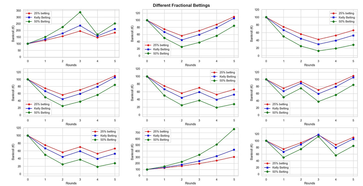 Lastly, here is a comparison of Kelly betting with other fractional bettings: