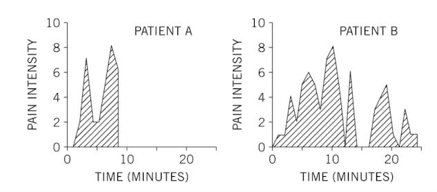Imagine you are a physician, and you have to choose between a surgery procedure that will lead to a pain profile as that of Patient A, or one that will lead to that of Patient B.
